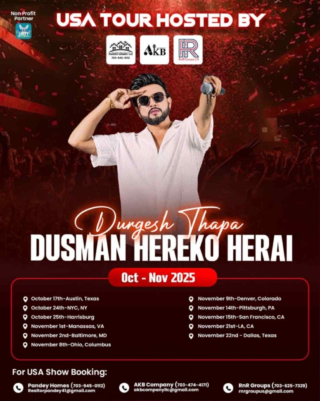 दुर्गेश थापा अमेरिका उड्दै, ११ सहरमा कार्यक्रम तय